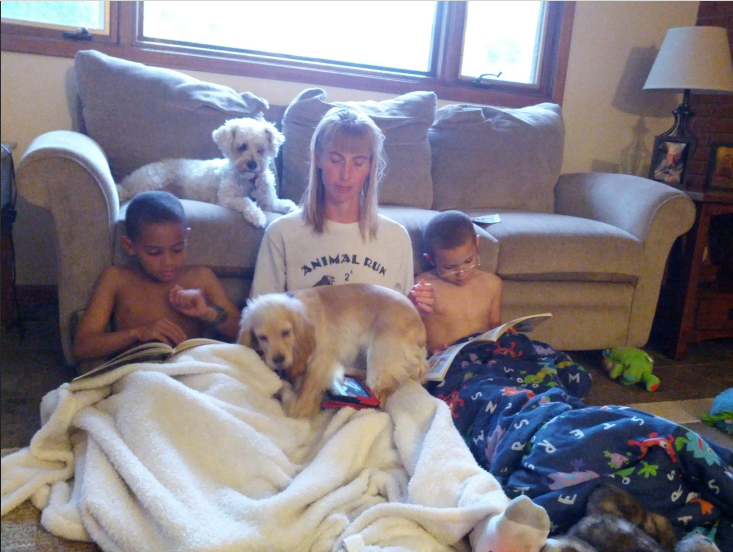 It was a cool, cloudy, rainy day. Sadie came home from a run, all bundled up in her waterproof running jacket, with something in her hands. She went into the kitchen, got some towels, and carefully placed upon them a tiny, hairless, pink critter. Its eyes weren’t even open! It had no business being on our kitchen counter. And yet, there was Sadie, trying to find a way to warm it up.